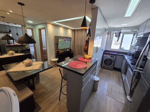 APARTAMENTO LOCALIZADO NA FASE 3 - ANDAR BAIXO COM 53 MTS SENDO 2 DORMITORIOS COM ARMARIOS PLANEJADOS, 1 BANHEIRO, COZINHA COM ARMARIOS PLANEJADOS, AREA DE SERVIÇO, 2 VAGAS, 1 COBERTA E 1 DESCOBERTA E MAIS 1 DE MOTO