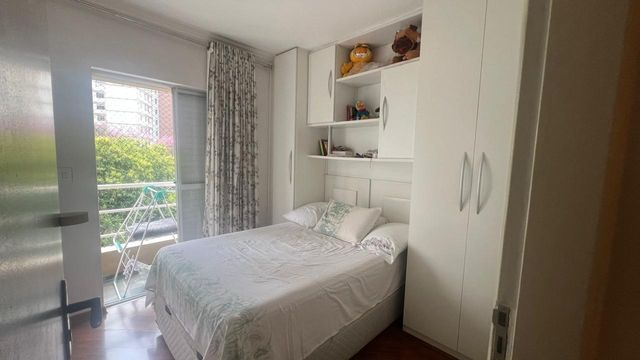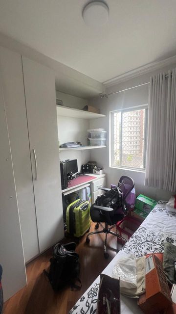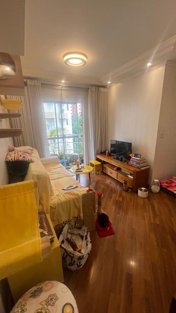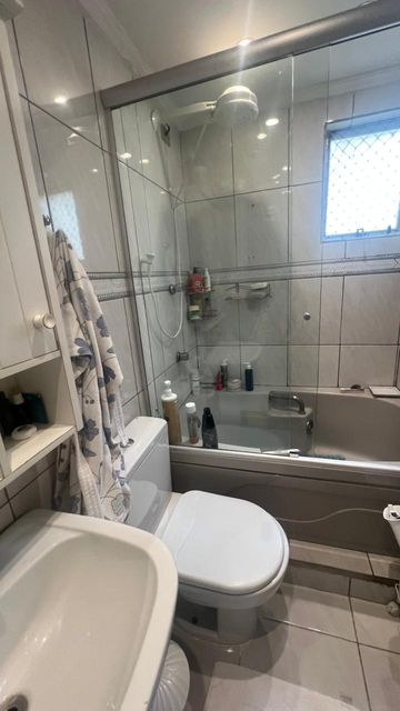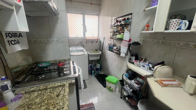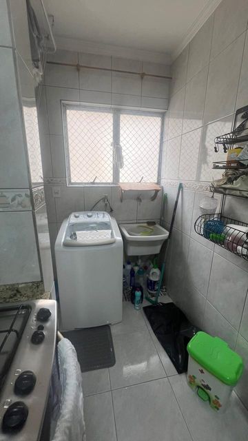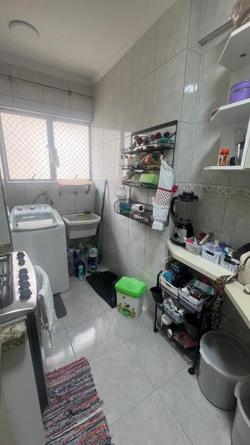 Sala com dois ambientes, com estante, sanca, iluminação decorativas com spots led´s, porta balcão para a varanda, cozinha com armários, e com janela, pia de granito, depurador com fogão embutido, area de serviço com armários, 2 dormitórios sendo um deles com guarda roupas planejado e outro com armario e bancada de estudo ou trabalho, bem iluminado, banheiro social com hidromassagem pia na cor branca e Box de vidro.