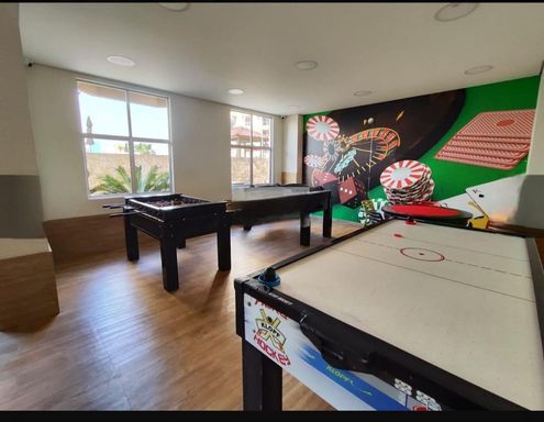 Lazer: Salão de festas, salão de jogos Piscina adulto e infantil climatizada, sauna, Playground, Brinquedoteca, duas Academias, Musculação e Cardio, quadra poliesportiva, quadra society Bicicletário, Cinema, segurança e portaria 24H.