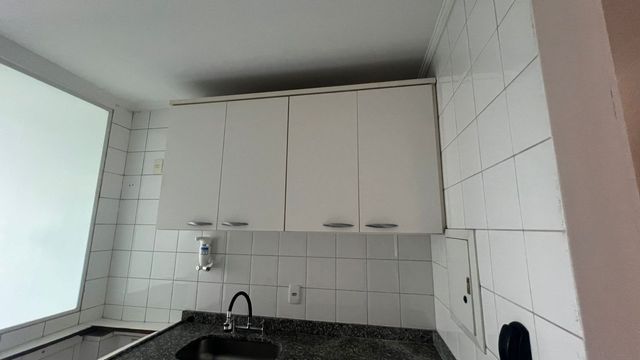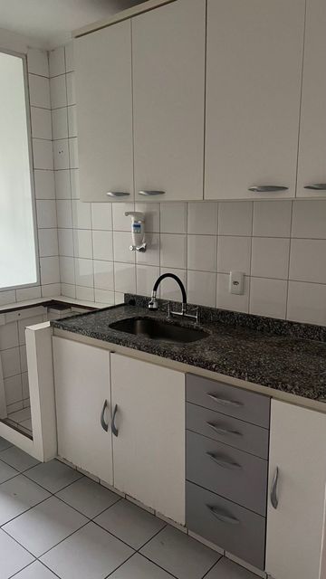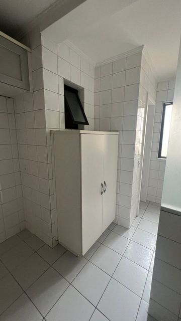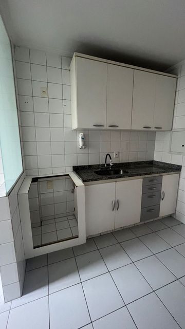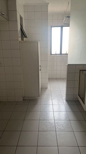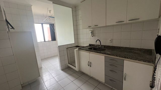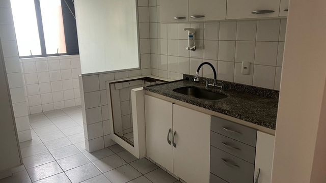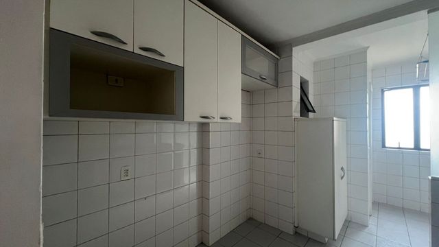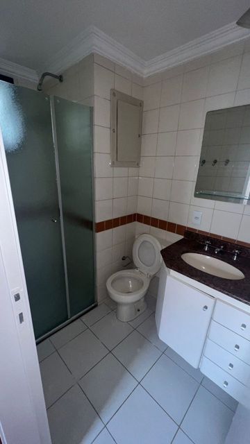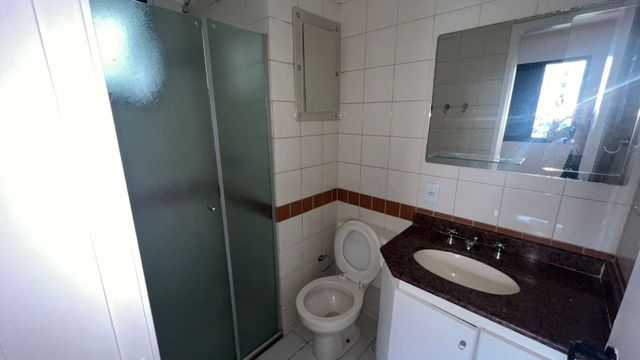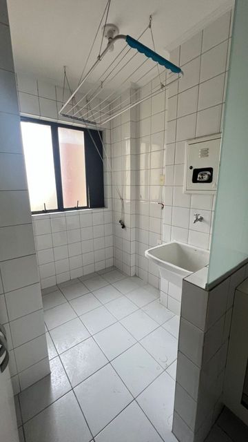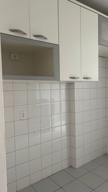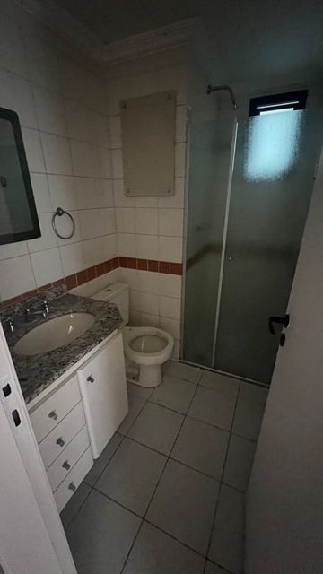 Sala com dois ambientes, Tv e de jantar, iluminação com spot de led, porta balcão para a varanda, cozinha com moveis planejados revestidos na cor branca, pia de granito na cor preta, área de serviço com banheiro, 3 dormitórios sendo 2 com guarda roupas embutidos na cor marfim e 1 dormitório com móvel de escritório embutido, a suíte tem pia de pedra na cor escura, gabinete, espelho e com box em vidro leitoso, banheiro social tem pia em pedra na cor cinza, gabinete e Box de vidro leitoso. Apartamento bem arejado. 2 vagas de garagem.